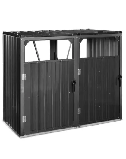 Cache poubelles double en métal gris anthracite - 147x80x120 cm