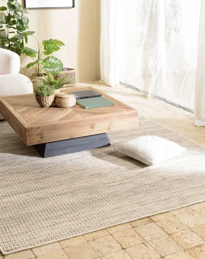 Tapis en Laine tissée Quentin blanc/kaki - 290x200 cm