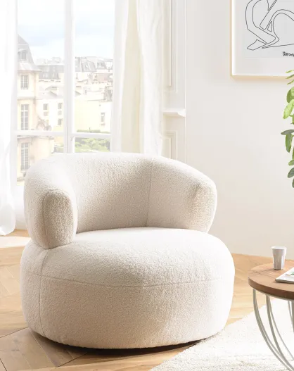 Fauteuil en tissu bouclette assise arrondie écru - 85x83x74 cm
