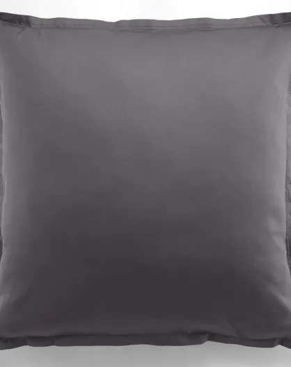 Taie d'oreiller avec volant satin de coton lavé grise