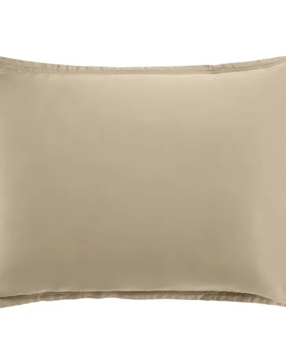 Taie d'oreiller avec volant en percale de coton lavé ecru naturel
