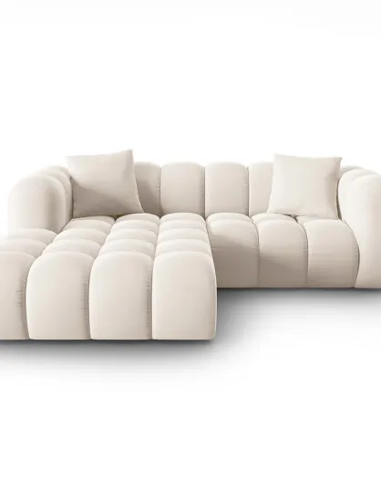 Canapé d'angle gauche en Velours Halley 3 places beige clair - 228x87x70 cm