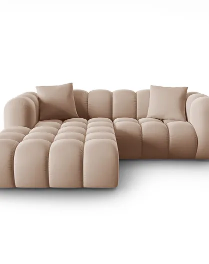 Canapé d'angle gauche en Velours Halley 3 places beige - 228x175x70 cm
