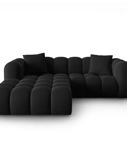 Canapé d'angle gauche en Velours Halley 3 places noir - 228x175x70 cm