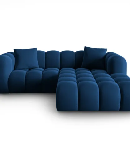 Canapé d'angle droit en Velours Halley 3 places bleu roi - 228x175x70 cm