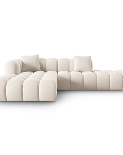 Canapé d'angle gauche en Velours Halley 5 places beige clair - 294x175x70 cm
