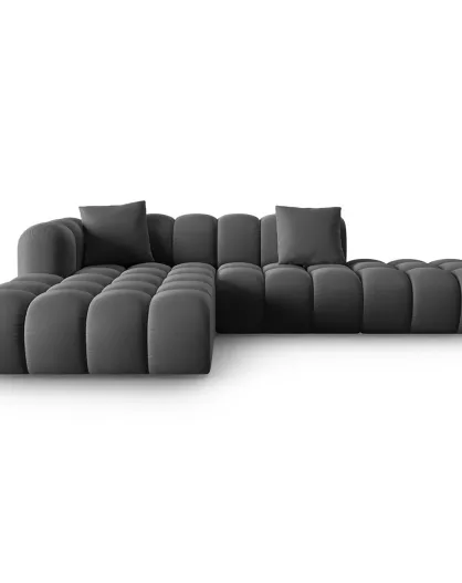 Canapé d'angle gauche en Velours Halley 5 places gris - 294x175x70 cm