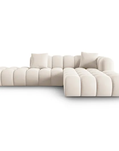 Canapé d'angle droit en Velours Halley 5 places beige clair - 294x175x70 cm