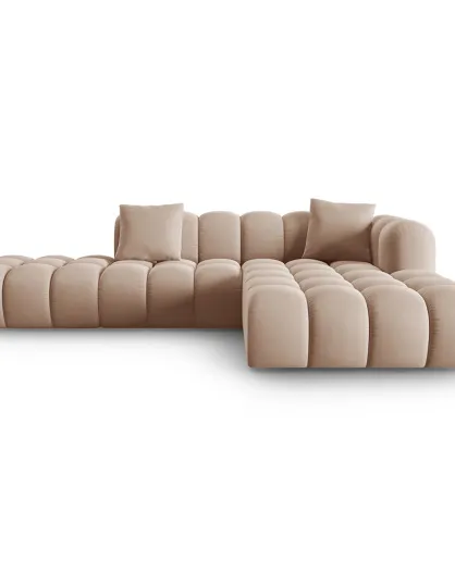 Canapé d'angle droit en Velours Halley 5 places beige - 294x175x70 cm
