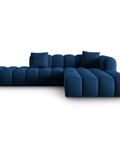 Canapé d'angle droit en Velours Halley 5 places bleu roi - 294x175x70 cm