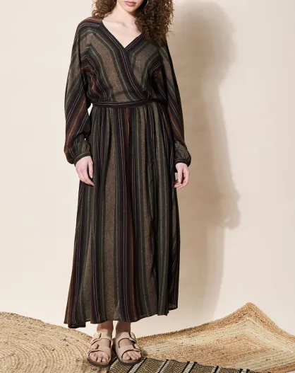 Robe en Laine mélangée Eglantine rayée Vert/Noir