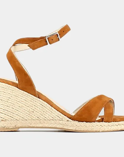 Espadrilles en Velours de Cuir Sibel cognac - Talon 10.5 cm