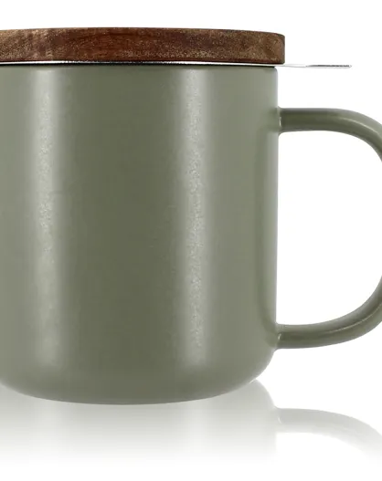 Tisanière avec couvercle en Grès & Acacia Juliet inox/kaki/naturel - 300ml