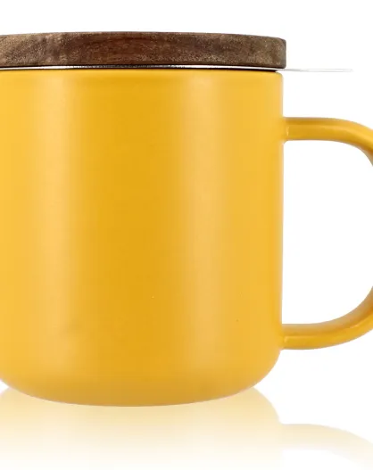 Tisanière avec couvercle en Grès & Acacia Juliet inox/jaune/naturel - 300ml