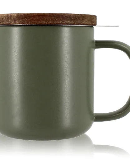 Tisanière avec couvercle en Grès & Acacia Juliet inox/naturel/vert - 300ml