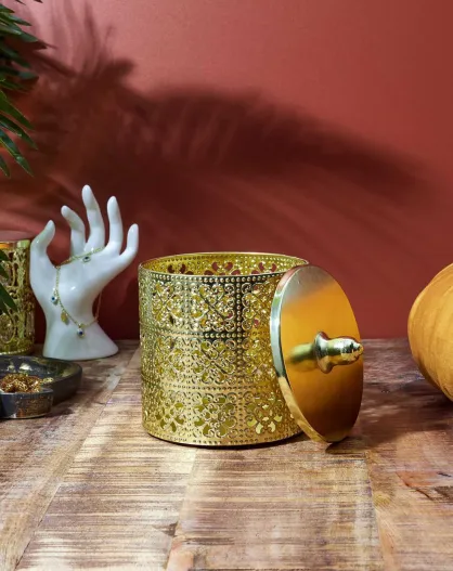 Boite avec couvercle dorée - 12x14.8x12 cm