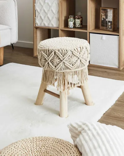 Tabouret Boho beige/marron - 32x42x32 cm