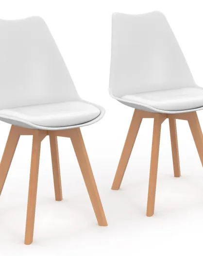 2 Chaises scandinaves Nordia avec coussin blanches - 46x51x79.5 cm