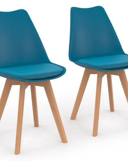 2 Chaises scandinaves Nordia avec coussin bleu canard - 46x51x79.5 cm