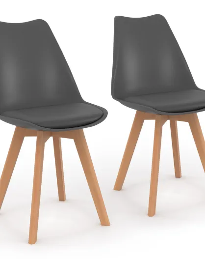 2 Chaises scandinaves Nordia avec assise matelassée gris foncé - 46x51x79.5 cm