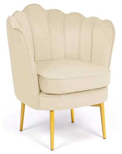 Fauteuil Arielle en Velours et pieds dorés crème - 68x59x76 cm