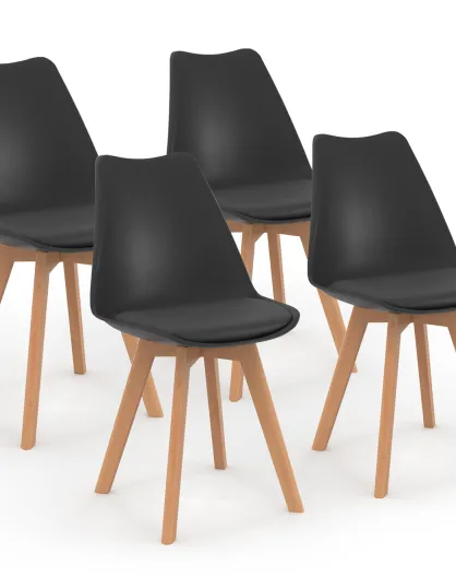 4 Chaises Nordia pieds bois noires - 46x51x79.5 cm