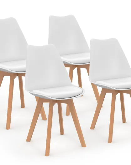4 Chaises scandinaves Nordia avec coussin blanches - 46x51x79.5 cm