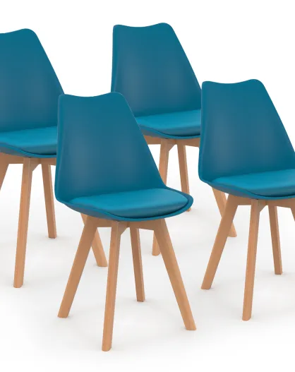 4 Chaises scandinaves Nordia avec coussin bleu canard - 46x51x79.5 cm