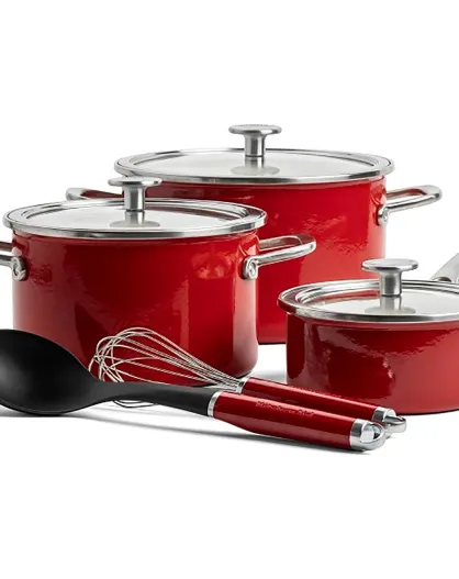 Batterie de cuisine induction acier émaillé rouge - 8 pièces