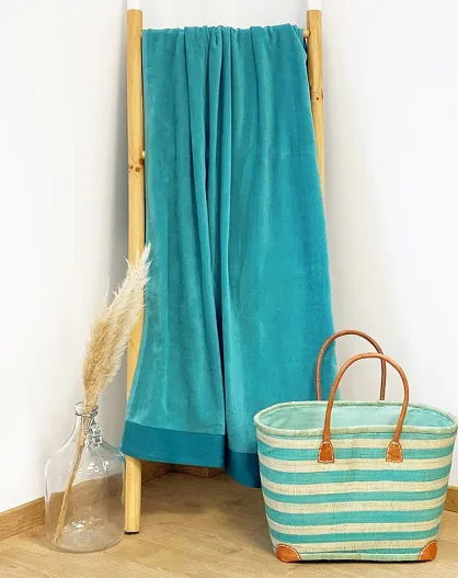 Serviette de bain en éponge velours Shady turquoise - 90x160 cm