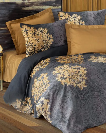 Parure housse de couette Jadira anthracite/beige