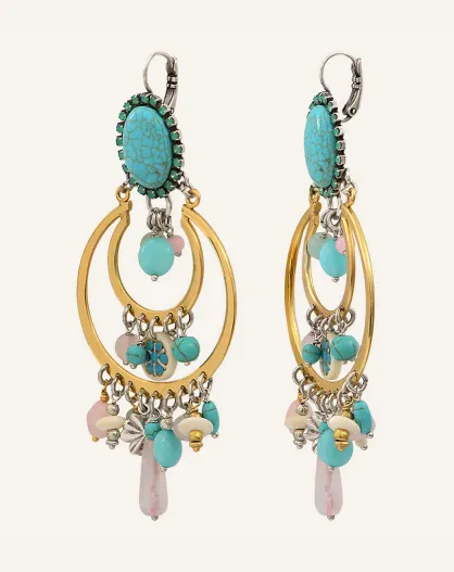 Boucles d'oreilles Lucky Charms Jade, Quartz Amazonite, Howlite & Cristal Swarovski dorées