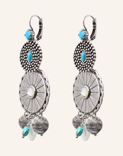 Boucles d'oreilles Positano multipierres argenté/turquoise
