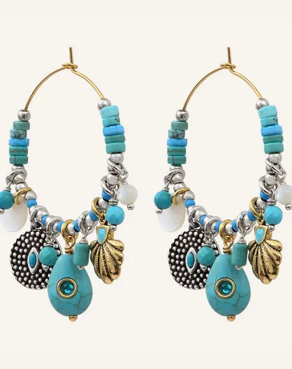 Boucles d'oreilles Positano multipierres argenté/turquoise