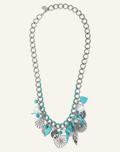 Collier Positano multipierres argenté/turquoise