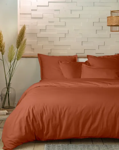 Parure housse de couette en percale de coton - terracota