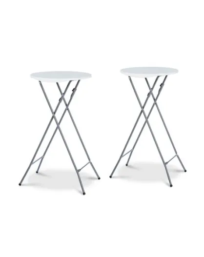 2 Tables hautes de réception pliantes + housses noires gris/blanc - 60x60x105 cm