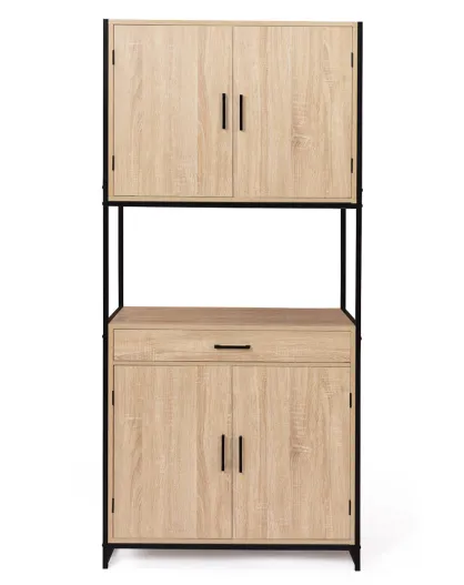 Vaisselier industriel Memphis 2 niveaux bois/noir - 80x40x176.5 cm