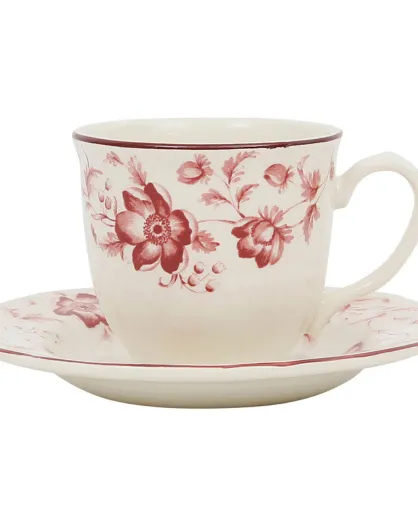 6 Tasses à thé avec soucoupe Margaux rouges - 20 cl