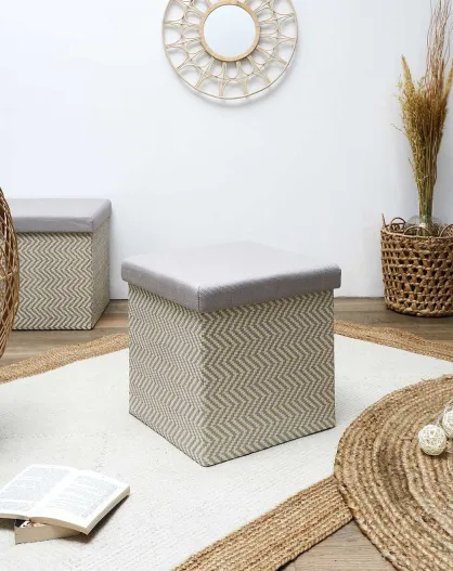 Coffre pouf pliable cotelé scott beige - 38x38x38 cm
