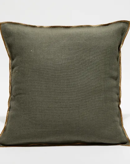 Housse de coussin en lin lavé kaki - 45x45 cm