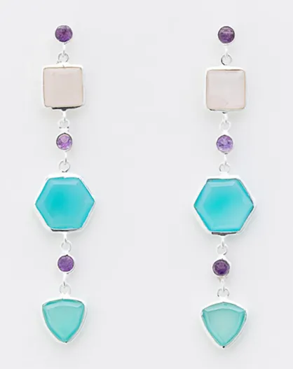 Boucles d'oreilles en Argent, Calcédoine bleue & Quartz rose