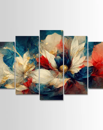 Peinture décorative 5 pièces fleur multicolore - 100x60 cm