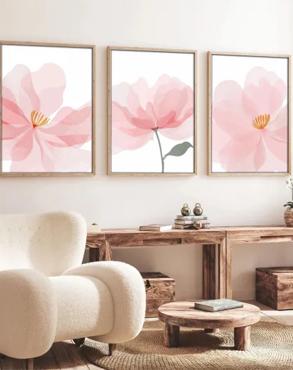 Peinture décorative encadrée 3 pièces Abstrait fleur rose multicolore - 50x70 cm