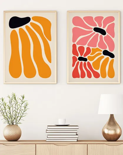 Peinture décorative encadrée 2 pièces Abstrait multicolore - 50x70 cm