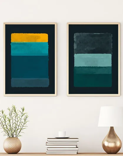 Peinture décorative encadrée 2 pièces dégradé multicolore - 50x70 cm