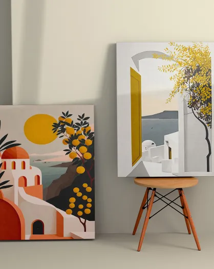 Toile décorative 2 pièces Paysage méditerranéen multicolore - 110x70 cm