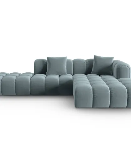 Canapé d'angle droit Ouvert Velours Clotilde 4 Places bleu clair - 294x177x70 cm