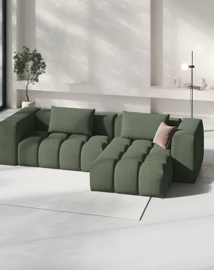 Canapé d'angle droit Modulaire Lorella 3 Places vert olive foncé - 260x145x70 cm