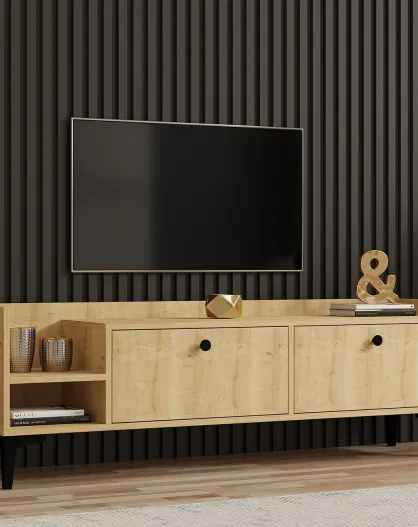 Meuble TV Heflin chêne saphir - 150x50x36 cm